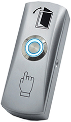 Fém nyomógomb elsősorban kilépési ajtónyitáshoz, széles, téglalap alakú.