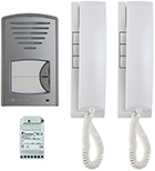 2 lakásos audio kaputelefon szett, falon kívüli kültéri, 1+1 vezeték, 12VAC.